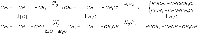 Глицерин | Глицерин (далее Г) (от греч. glykeros - сладкий) (1,2,3-триоксипропан; пропантриол-1,2,3), простейший трехатомный спирт НОСН2 - СНОН - СН2ОН; сиропообразная бесцветная нетоксичная сладкая на вкус жидкость; без запаха; tпл 17,9°С, tkип 290°С; плотность 1,26 г/см3 (25°С); переохлаждаясь, превращается около -100°С в стекловидную массу. Г может быть перегнан без разложения только в вакууме или с перегретым паром. Г смешивается во всех соотношениях с водой (температура кипения водных растворов Г понижается с уменьшением концентрации Г; эти растворы характеризуются низкими температурами замерзания), а также с метиловым и этиловым спиртами и ацетоном. Г растворим в смеси спирта с эфиром или нерастворим в жирах, бензине, бензоле, сероуглероде; растворяет многие неорганические и органические вещества, например соли, щелочи, гигроскопичен, поглощает воду из воздуха до 40% (по массе). Г образует моно-, ди- и трипроизводные. Подобно др. спиртам, он дает металлические производные - глицераты. При взаимодействии с галогеноводородами или галогенидами образуются галогенгидрины, например a- 22, a, g-дихлоргидрин 22. Г окисляется до глицеринового альдегида (СН2ОН-СНОН-СН=О), диоксиацетона (СН2ОН-СО-СН2ОН), глицериновой кислоты (СН2ОН-СНОН-СООН) и др., а также 2 и воды.