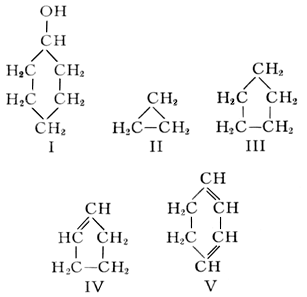 Алициклические соединения | Алициклические соединения (далее А)органические соединения, в молекулах которых имеются замкнутые кольца из Так, циклогексанол (1) содержит кольцо из 6 Ароматические соединения тоже содержат замкнутые кольца, но обладают рядом существенных особенностей; поэтому их выделяют в отдельный большой класс органических соединений. Алициклические соединения и ароматические соединения совместно относятся к карбоциклическим, или изоциклическим, соединениям.
