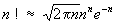 Стирлинга формула | Стирлинга формула (далее С) формула, дающая приближенное выражение произведения п первых натуральных чисел (т. н. факториала) 1×2×...×n = n!, когда число п сомножителей велико. С была найдена (без оценки погрешности) Дж. Стирлингом, опубликовавшим ее в 1730. С устанавливает приближенное равенство