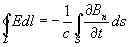 то есть циркуляция вектора напряженности электрического поля вдоль замкнутого контура L (эдс индукции) определяется скоростью изменения потока вектора индукции через поверхность , ограниченную данным контуром. Здесь n — проекция на нормаль к площадке ds вектора индукции В; знак минус соответствует Ленца правилу для направления индукционного тока.